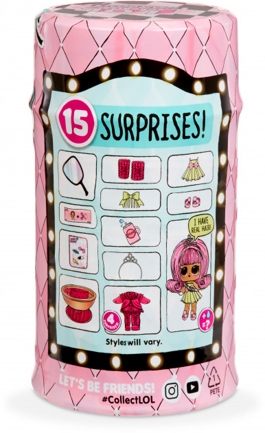 L.O.L Surprise Hairgoals S5 W2 Открывать куколку L.O.L стало еще интересней в новой серии L.O.L. S5 Модное перевоплощение! Попробуй себя в роли стилиста! Новая капсула в форме лака для волос! Большинство куколок этой серии имеют «настоящие» волосы, им можно делать различные прически и укладки. Разместите волшебное зеркальце, которое входит в набор, перед объективом камеры и сделайте фото вашей куклы. Зеркало создает фильтр! Куколка будет в силиконовом костюме, который можно будет снять и одеть на нее вещи, спрятанные в кейсе. Стильную прическу можно создавать не только куколке, но и девочке, ведь бигуди накручиваются на волосы, и в результате получаются милые кудряшки. Капсулу можно использовать как для хранения куколки, так и в качестве отдельного модного аксессуара! У куколки теперь есть свой диванчик, на котором она может отдохнуть, и подставка для бутылочки Внутри кейса вы найдёте 15 сюрпризов: Стикер с секретным посланием Наклейки для волос Зеркальце 2 Бигуди Диванчик для куклы Бутылочка Обувь Одежда Силиконовый костюм, который можно разделить на 4 отдельные части Модные аксессуары Куколка Лист коллекционера У вашей куклы может быть одна из функций: Меняет цвет в холодной или теплой воде Плачет Брызгается Делает пи-пи Не рекомендовано для детей до 3 лет. Размер упаковки 9 х 9 х 17.1 см Комплектация Стикер с секретным посланием Наклейки для волос Зеркальце 2 Бигуди Диванчик для куклы Бутылочка Обувь Одежда Силиконовый костюм, который можно разделить на 4 отдельные части Модные аксессуары Куколка Лист коллекционера Страна-производитель товара Китай Страна регистрации бренда США