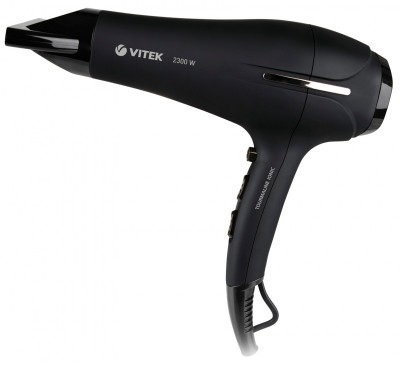 Фен Vitek VT-2262, black мощность 2300 Вт ионизация, подача холодного воздуха режимов нагрева: 3 скоростей: 2 длина сетевого шнура: 1.8 м
