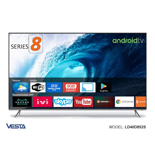 Телевизор Vesta LD40D852S Тип LED-телевизор Система AndroidTV 7.0 Google Play Market Диагональ: 40" (100 cm) Разрешение FULL HD 1920x1080 Цифровой тюнер DVB-T/T2/C Видеообзор настройки бесплатных цифровых каналов USB -Video/Photo/Music (Поддерживает все популярные форматы)