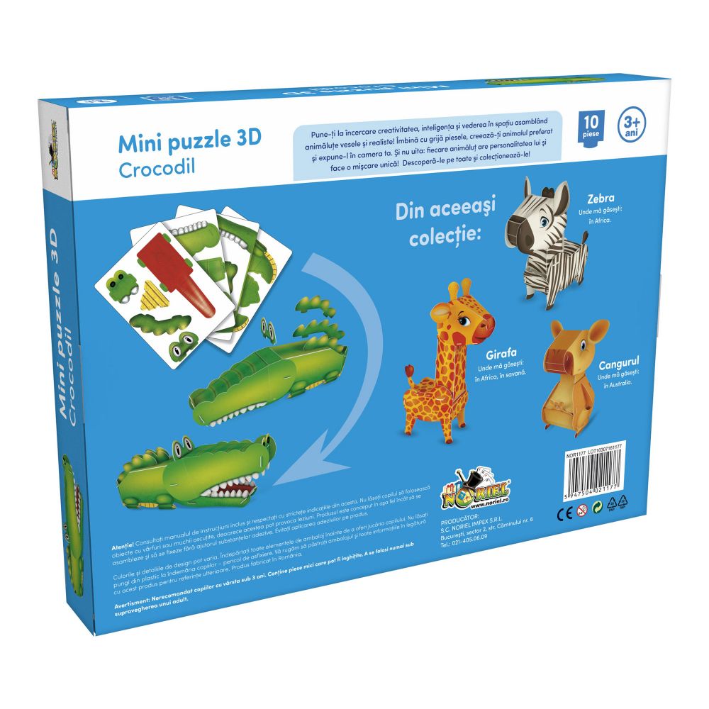 NORIEL Mini Puzzle 3D Crocodil Noriel Мини пазл 3D Крокодил" Посмотри внимательно! Крокодил открывает свои челюсти! Дети могут изучать удивительные вещи, создавая интересные модели для взрослых с дикими животными, которые они теперь могут изучить подробно. Они будут удивлены, увидев, что их модели перемещают определенные части тела, если ими управляют вручную. Какое твое любимое животное? Количество деталей: 10 Возрастная рекомендация: 3 года +