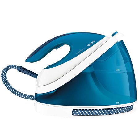 Philips GC7054/20 Тип продукта Гладильная станция тип горизонтальный технологии SteamGlide Plus OptimalTEMP функции Анти известняк Автоматическое отключение Эко режим цвет Белый / синий мощность 2400 Вт Панель управления наконечником механический Максимальное давление 6 бар Емкость контейнера для воды 2 л Моль материала титан Расход пара (г / мин) 120 Расход струи пара (г / мин) 320 длина 23,6 см ширина 32,2 см высота 19,4 см Длина кабеля 1,8 м вес 4,1 кг