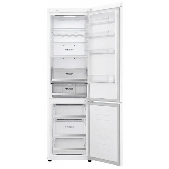 Холодильник LG GA-B509SVDZ Smart, White (203см/384л/А+/NoFrost) Холодильник комби, нижнее распололожение морозильника Размораживание - Full NoFrost DoorCooling+, Multi Air Flow, LG SmartThinQ, Общий объем 384 л. Объем холодильной камеры 277 л