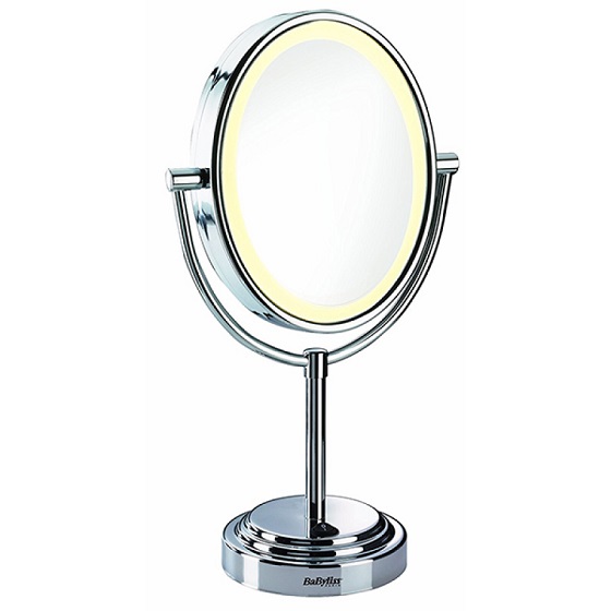 "Mirror Babyliss 8437E table mirror, oval, O 178mm, lighting, ring-shaped,classic and 7-way magnification,mains operation"