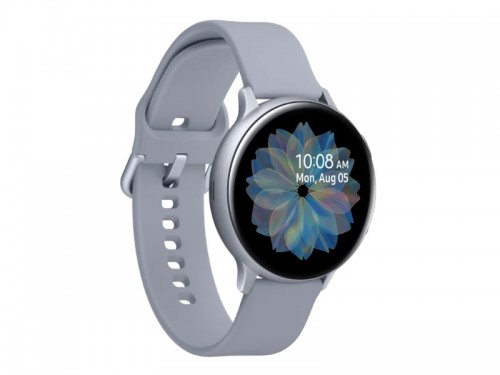 Samsung Galaxy Watch Active2 44mm Alu Silver влагозащищенные материал корпуса: алюминий сенсорный Super AMOLED-экран, 1.2", 360x360 звонки с помощью телефона или планшета совместимость с Android, iOS мониторинг сна, калорий, физ. активности устойчивое к царапинам стекло вес: 26 г