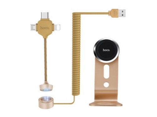 Hoco Car Holder, Multifunction Magnetic, P8 Gold Тип автомобильный держатель Совместимые устройства портативные устройства Место крепления приборная панель Тип крепления магнитный держатель Комплектация держатель для телефона, USB кабель, зарядное устройство Материал металл Цвет золотистый Дополнительно специальный тройник имеет три вида разъемов: Ligtning, microUsb, Type-C