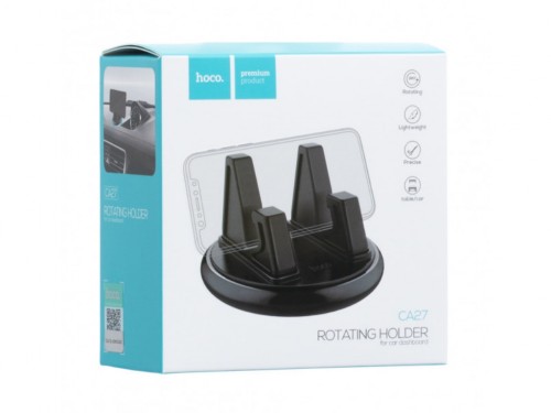 Hoco Car Holder, Rotating, CA27 Black Hoco CA27 Rotating Holder - невероятно удобный и стильный автомобильный держатель, что позволяет закрепить смартфон диагональю до 6 дюймов. Главной особенностью держателя является то, что для поддержания смартфона не нужен магнит или крепление, ставте его в удобное положение. Благодаря качественной полимерной присоске, держатель можно установить не только на лобовое стекло автомобиля, но и на торпеду.