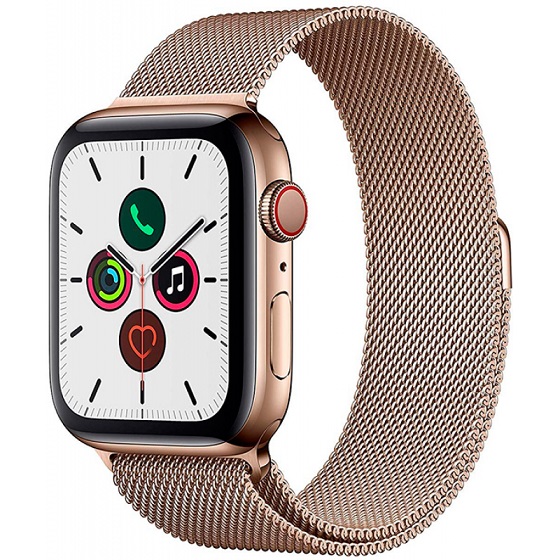 Apple Watch 5 44mm/Gold Stainless Steel Case With Gold Milanese Loop, MWWJ2 GPS + LTE