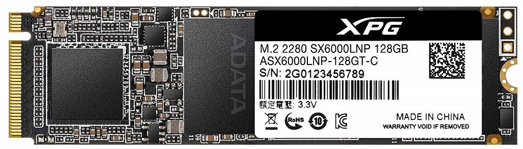 .M.2 NVMe SSD 128GB ADATA XPG SX6000 Lite [PCIe3.0 x4, R/W:1800/600MB/s, 100/130K IOPS, 3DTLC] емкость 128 ГБ для ноутбука и настольного компьютера Форм-фактор: 2280 интерфейс PCI-E разъем M.2 игровой