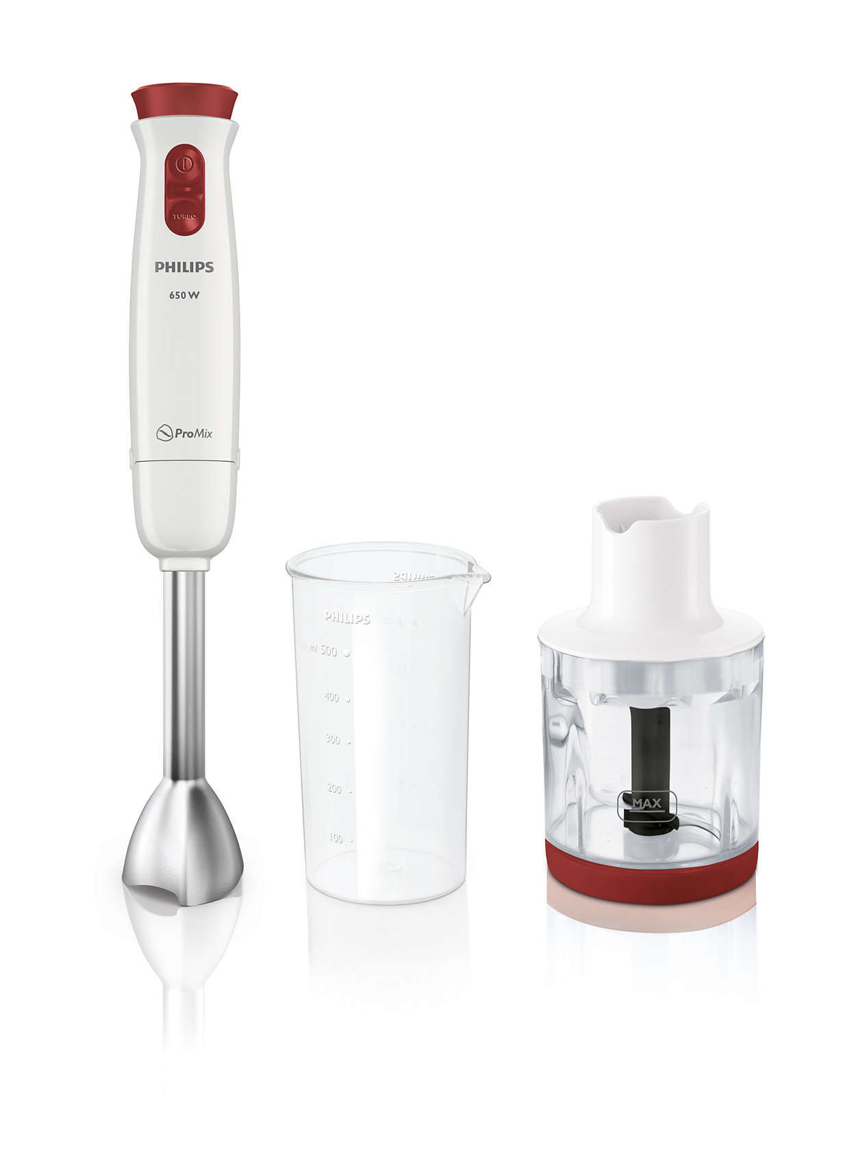 Блендер Philips HR1623/00, white red Тип погружной Мощность 650 Вт Измельчитель есть Объем чаши 0.3 л Материал чаши пластик Количество скоростей 2 Турборежим есть Мерный стаканчик есть Материал корпуса пластик Материал погружной части нержавеющая сталь Длина сетевого шнура 1.25 м Цвет белый/красный Производитель Philips