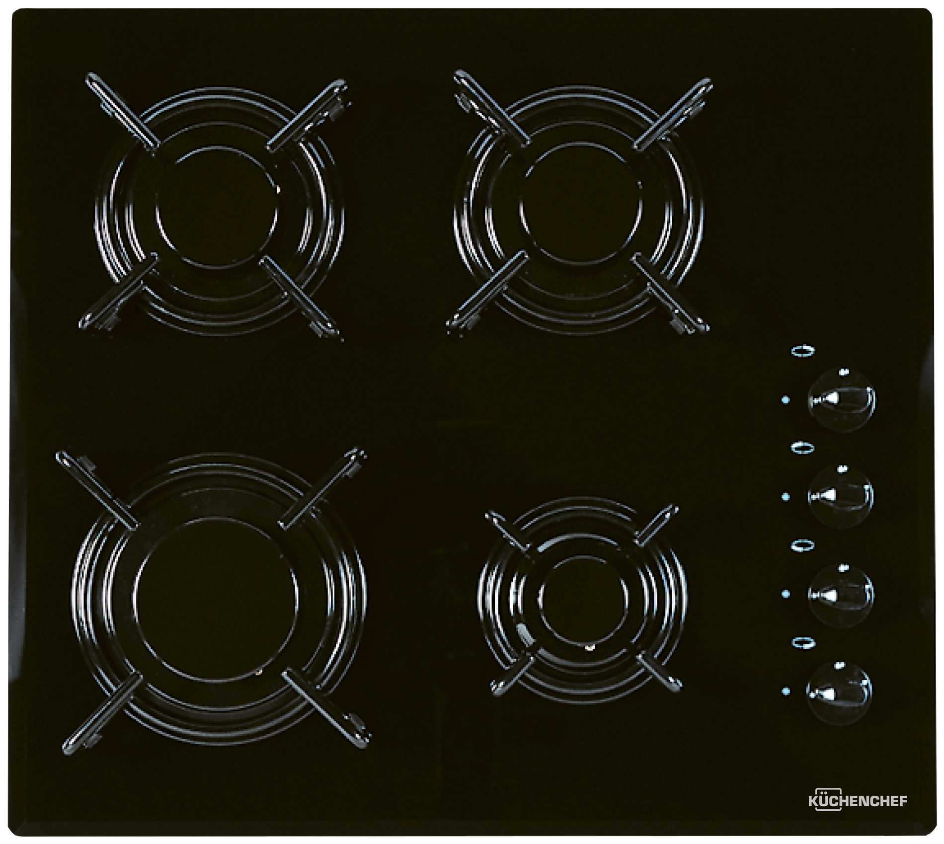 Варочная панель KUCHENCHEF KHK600S поверхность из закаленного стекла 4 конфорки независимая установка электроподжиг газ-контроль поворотные переключатели ШхГ: 57.60х51.80 см