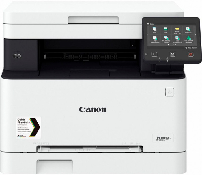 МФУ Canon i-SENSYS MF641Cw МФУ (принтер, сканер, копир) для небольшого офиса 4-цветная лазерная печать 18 стр/мин макс. формат печати A4 (210 ? 297 мм) макс. размер отпечатка: 216 ? 356 мм цветной ЖК-дисплей интерфейсы: Wi-Fi, Ethernet (RJ-45), USB