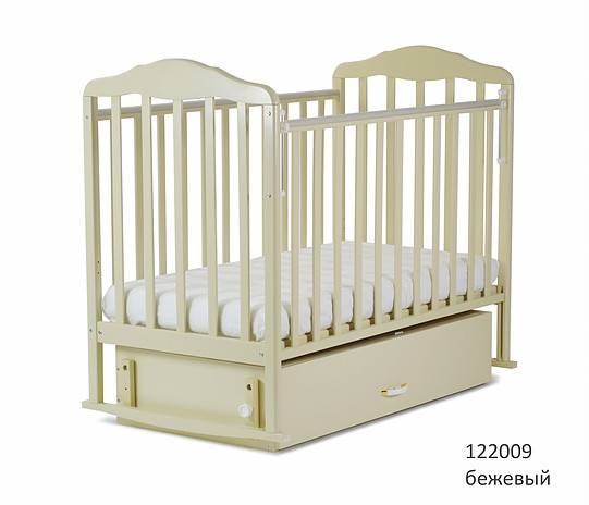 123009 Кровать детская Берёзка с маятником и ящиком (автостенка, накладка ПВХ, бежевый) Размер ложа 1200х600 мм Детская кровать «Берёзка» с ящиком и маятником даст возможность укачать малыша и хранить все необходимые вещи под рукой. Данная модель укомплектована новой моделью ящика с накладным МДФ фасадом, покрытым плёнкой ПВХ в цвет дерева. Качалка (дугообразное основание соединяющее ножки кроватки позволяет комфортно и безопасно укачивать малыша) Маятник поперечный Механизм опускания боковой стенки 2-х уровневое ложе ПВХ накладки "грызунки" Ящик закрытый Материал: ЛДСП/массив березы Размер: 1140х1250х720 мм Ложе: 120х60 см Вес товара: 23кг.