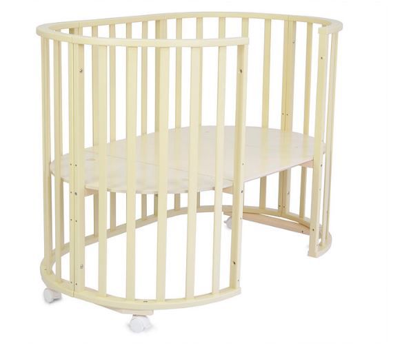 101009 Кровать детская "СКВ-10" с маятником 9 в 1 бежевый Детская кроватка «9 в 1». Кроватка выполнена из массива северной берёзы и МДФ. Закругленный края деталей не позволят Вашему малышу удариться. В первые месяцы жизни в круглой кроватке малыш чувствует себя очень комфортно! Девять вариантов трансформации позволяют использовать кроватку продолжительное время. Варианты сборки: 1. Круглая колыбель на маятнике; 2. Круглая колыбель на колесах; 3. Круглый манеж; 4. Стол; 5. Овальная кровать на маятнике; 6. Овальная кровать на колесах; 7. Овальный манеж; 8. Диванчик; 9. Стол, 2 стула Маятниковый механизм: есть Колеса: есть Ложе: 4 уровня Механизм опускания: нет Накладка ПВХ: нет Материал: массив берёзы, МДФ Размеры спального места: 750*750 мм; 1250*750 мм; Габариты овальной кровати: 1330*960* 830 мм Габариты упаковки: 445*900*600 мм Вес брутто: 30 кг