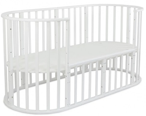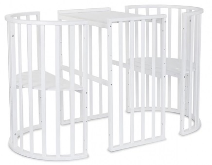 102001 Кровать детская "СКВ-10" с маятником 12 в 1 белый Круглая кроватка-трансформер СКВ-10 12 в 1,универсальный маятник арт. 10200 выполнена из массива северной берёзы и МДФ. Закругленный края деталей не позволят Вашему малышу удариться. В первые месяцы жизни в круглой кроватке малыш чувствует себя очень комфортно! Десять вариантов трансформации позволяют использовать кроватку продолжительное время. Варианты сборки: круглая колыбель; круглая колыбель на колёсах; круглый манеж; 2 кресла стол овальная кровать с маятником; овальная кровать на колёсах; овальный манеж; диван; диван с низкой стенкой; большая кровать; большая кровать с ограждением. Размеры спального места: 750*750 мм; 1250*750 мм; 1750*750 мм; Габариты овальной кровати:1330*960* 830 мм Габариты упаковки:445*900*600 мм Вес брутто: 35 кг