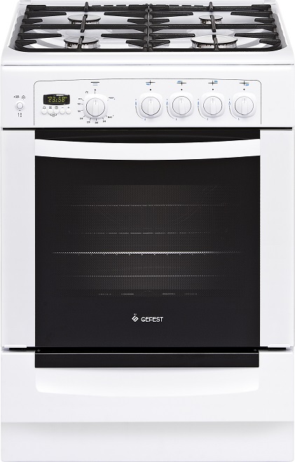Газовая плита Gefest 6100-04 0002 эмалированная рабочая поверхность 4 конфорки газовая духовка, объем 52 л ШхВхГ: 60х85х60 см гриль механическое управление таймер газ-контроль духовки, газ-контроль варочной поверхности, электроподжиг
