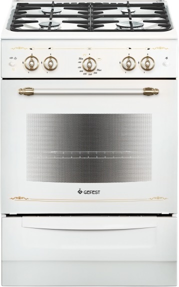 Газовая плита Gefest 6100-02 0185 эмалированная рабочая поверхность 4 конфорки газовая духовка, объем 52 л ШхВхГ: 60х85х60 см гриль механическое управление газ-контроль духовки, электроподжиг