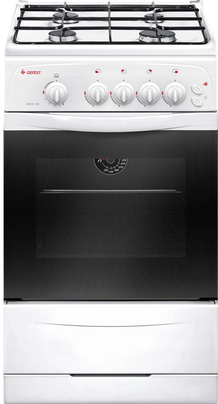 Газовая плита Gefest 3200-06 К2 эмалированная рабочая поверхность 4 конфорки газовая духовка, объем 42 л ШхВхГ: 50х85х57 см механическое управление газ-контроль духовки, электроподжиг