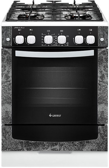 Газовая плита Gefest 6500-02 0113 рабочая поверхность из закаленного стекла 4 конфорки газовая духовка, объем 52 л ШхВхГ: 60х85х60 см гриль механическое управление таймер газ-контроль духовки, электроподжиг