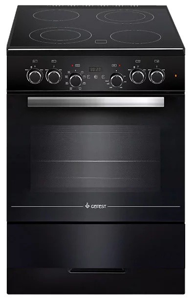 Электрическая плита Gefest 6560-03 0057 стеклокерамическая рабочая поверхность 4 конфорки объем духовки 52 л ШхВхГ: 60х85х60 см гриль электрический механическое управление таймерЭлектрическая плита Gefest 6560-03 0057