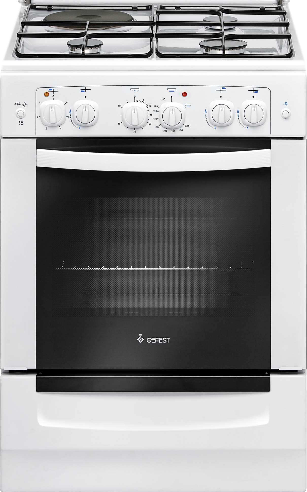 Комбинированная плита Gefest 6111-02 Тип Комбинированная (газ+электро) Газ-контроль Духовки Мощность горелки духовки: 3100 Вт Мощность электрогриля: 1200 Вт. Регулировочные ножки Выдвижной ящик Терморегулятор Электроподжиг Духовки, Конфорок Комплектация Противень, жаровня, решетка духовки, вертел Дисплей Без дисплея Тип нагревательных элементов Электрические, Газовые Количество конфорок 4 Электроподжиг поверхности Кнопкой Материал решеток поверхности Эмалированные