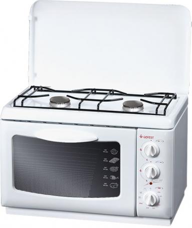 Плита настольная Gefest ПГЭ 120 Газовые горелки стола:2 Решетки:стальные Тип духовки:электрическая Крышка:металлическая Дополнительная характеристика:терморегулятор, электрогриль Цвет:белый Полезный объем духовки, л:18 Страна-производитель:Белоруссия