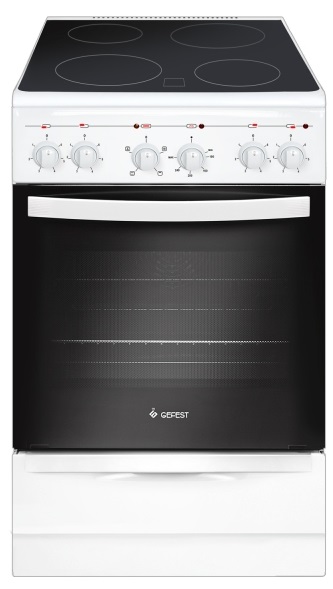 Электрическая плита Gefest 5160-02 0095 стеклокерамическая рабочая поверхность 4 конфорки объем духовки 52 л ШхВхГ: 50х85х58.50 см гриль электрический механическое управлениеЭлектрическая плита Gefest 5160-02 0095