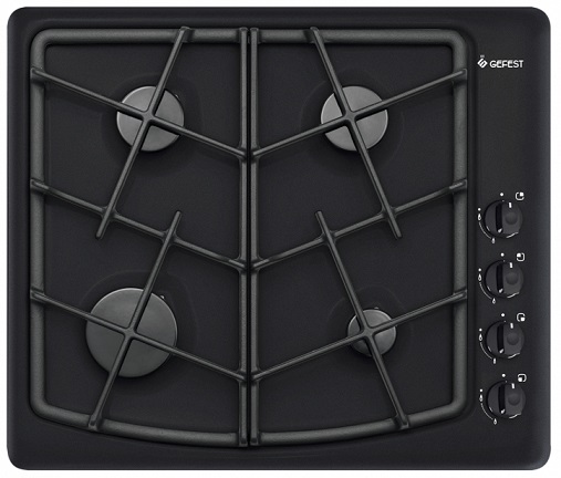 Панель варочная Gefest СН 1211 К21 эмалированная поверхность 4 конфорки независимая установка электроподжиг газ-контроль чугунные решетки поворотные переключатели ШхГ: 59х51 см