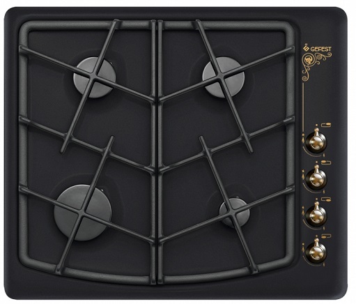 Панель варочная Gefest СН 1211 K73 эмалированная поверхность 4 конфорки независимая установка электроподжиг газ-контроль чугунные решетки поворотные переключатели ШхГ: 59х51 см