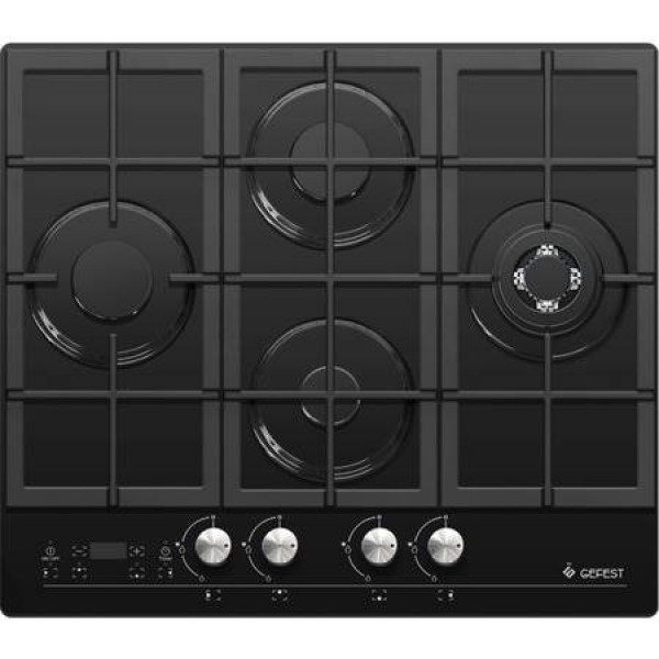 Варочная панель Gefest ПВГ 2231-08 К3 поверхность из закаленного стекла 4 конфорки независимая установка электроподжиг газ-контроль чугунные решетки поворотные, сенсорные переключатели кнопочное управление ШхГ: 60х52.50 см