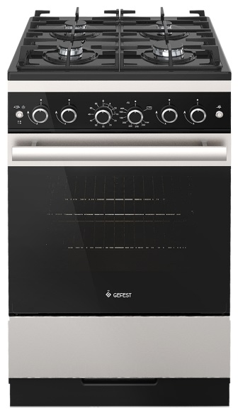 Газовая плита Gefest 5500-02 0069 рабочая поверхность из закаленного стекла 4 конфорки газовая духовка, объем 52 л ШхВхГ: 50х85х58.50 см гриль механическое управление таймер газ-контроль духовки, электроподжиг