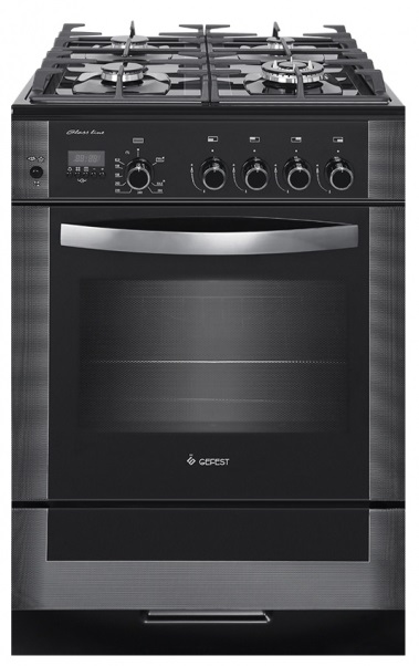 Газовая плита Gefest 6500-04 0074 рабочая поверхность из закаленного стекла 4 конфорки газовая духовка, объем 52 л ШхВхГ: 60х85х60 см гриль механическое управление таймер газ-контроль духовки, газ-контроль варочной поверхности, электроподжиг