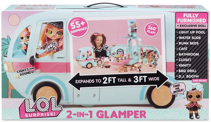 L.O.L Surprise Glamper Stilat L.O.L Surprise "Гламурный Кемпер" с аксессуарами Игровой набор L.O.L Surprise Гламурный Кемпер - первый автомобиль для Ваших куколок и любимцев, благодаря которому Вы можете отправиться в долгое путешествие всей семьей L.O.L Surprise. Передняя часть становится отдельной машиной, а задняя часть раскладывается и превращается в зону развлечений, где куколки могут ощутить настоящую гламурную жизнь. Бассейн, игровые площадки, места для отдыха и развлечений – все это, а также множество аксессуаров для ролевой игры, Вы найдете в игровом наборе L.O.L Surprise Световые и звуковые эффекты придадут игре еще больше эмоций и впечатлений. Бассейн с горкой можно наполнить водой и покупать своих куколок. Для игры требуются 6 батареек типа ААА. Рекомендовано для детей от 3 лет.