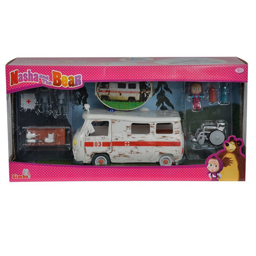 Simba papusa "Masha Ambulanta" 20 cm. Simba Маша и Медведь "Скорая помощь" "Маша и Медведь" это очень смешная анимация, рассказывает историю маленькой девочки Маши. На этот раз Маша играет врача скорой помощи. В комплекте вы найдете: - скорая помощь - инвалидное кресло - кровать - Аптечка - медикаменты - огнетушитель - кислородный баллон Рекомендуемый возраст: 3 года +