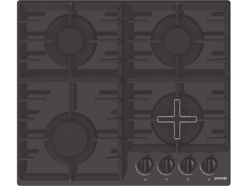 Газовая варочная панель Gorenje GT641B эмалированная поверхность 4 конфорки независимая установка электроподжиг газ-контроль чугунные решетки поворотные переключатели ШхГ: 60х52 см