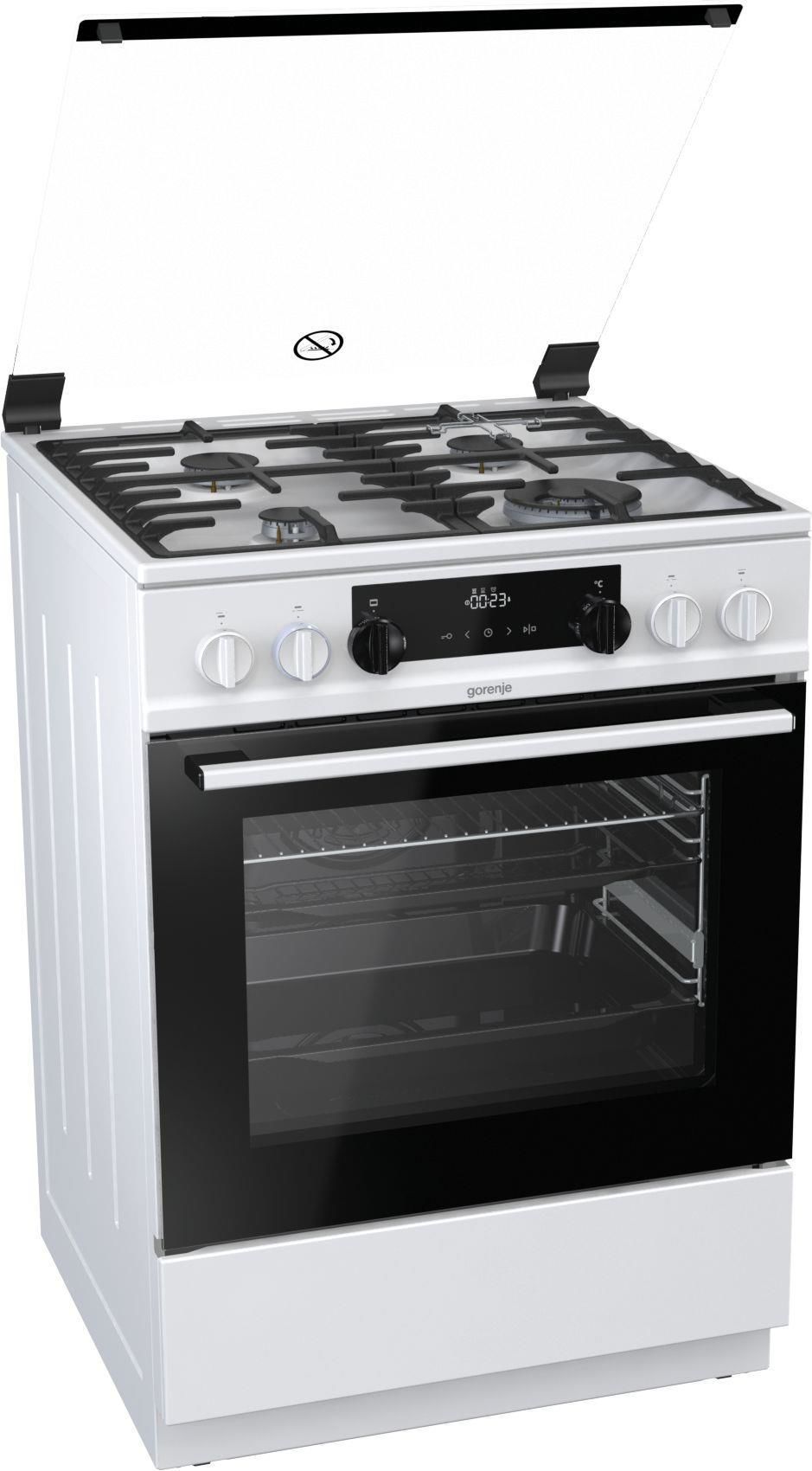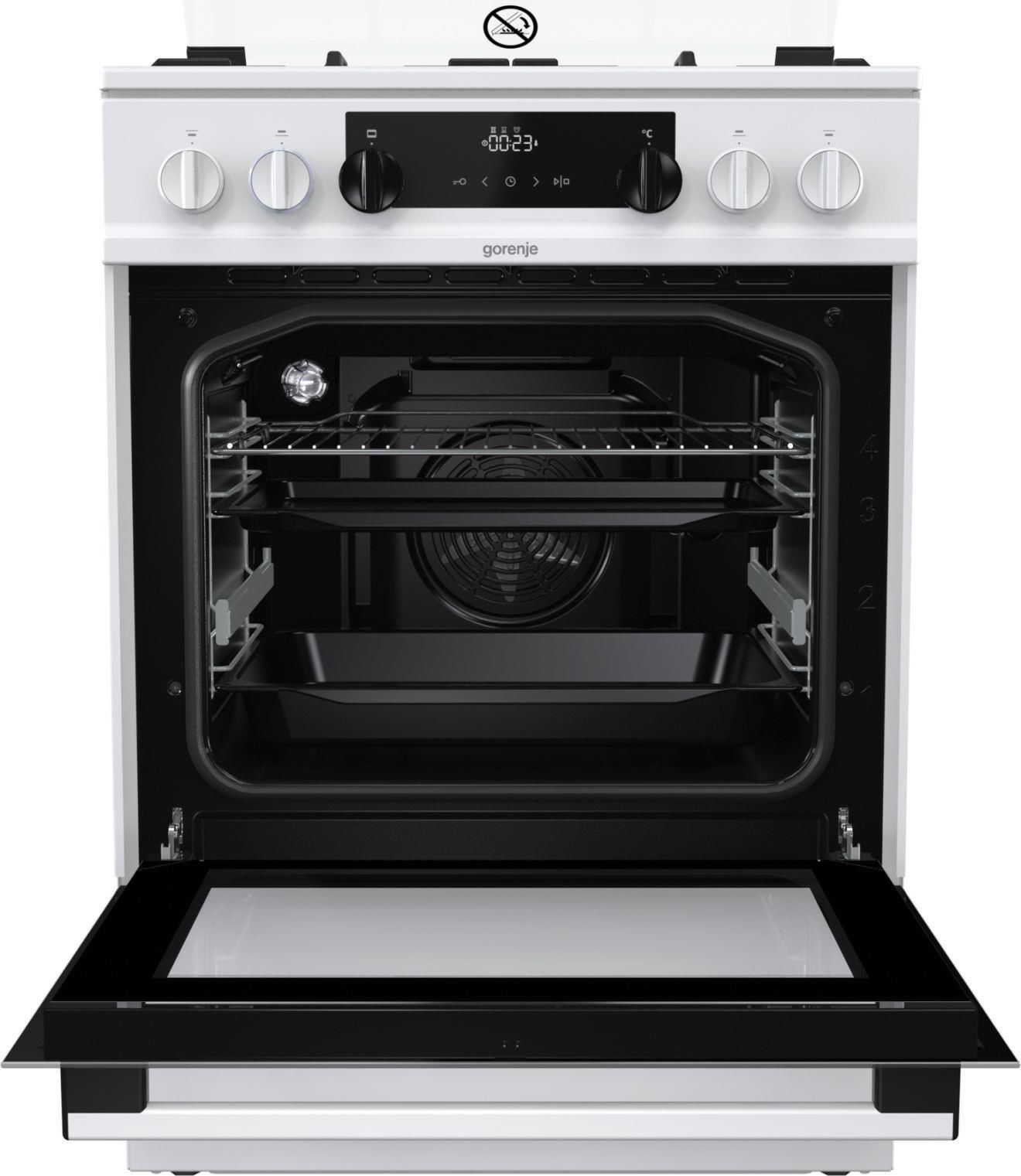 Плита комбинированная Gorenje K634WA Тип управления электромеханическое Дисплей да Таймер да Установка Тип газа G20 (2H) 20 mbar Номинальное давление газа 20 Количество конфорок 4 Материал поверхности эмаль Крышка поверхности стекло Решетка чугун Электроподжиг да Газ-контроль конфорок да Тип духовки электрическая Объем духовки, л 71 Количество функций духовки 9 Максимальная температура , ?С 275 Конвекция да Гриль электрический Подсветка да Очистка Паровая Габариты и вес Ширина, см 60 Глубина, см 60 Вес, кг 51 Цвет белый Доп. особенности GentleBake Страна производства Словения Производитель Gorenje