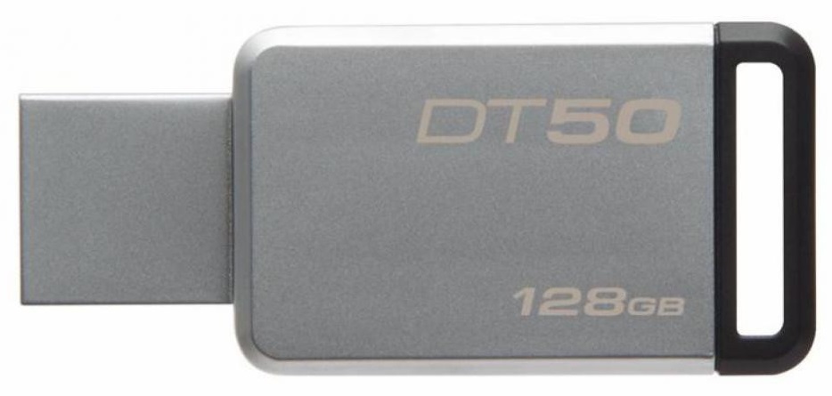 128GB USB3.1 Flash Drive Kingston DataTravaler DT50, Silver/Black, Metallic, Capless (DDT50/128GB) Объём памяти: 128 ГБ Интерфейс: USB 3.1 Материал корпуса: Металл Максимальная скорость чтения, до: 110 МБ/с Максимальная скорость записи, до: 15 МБ/с
