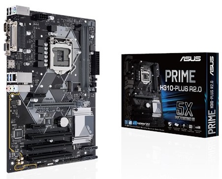 Материнская плата ASUS PRIME H310-PLUS R2.0, Socket 1151, Intel® H310 (9th/8th Gen CPU), Dual 2xDDR4-2666, 1xPCIe X16, CPU Intel graphics, VGA, HDMI, 4xSATA3, 1xM.2 slot, 2xPCIe X1, 3xPCI, 1xLPT, 1xCOM, ALC887 HDA, GbE LAN, 4xUSB3.1, Aura Sync, ATX материнская плата форм-фактора ATX сокет LGA1151 v2 чипсет Intel H310 2 слота DDR4 DIMM, 2133-2666 МГц. разъемы SATA: 6 Гбит/с - 4