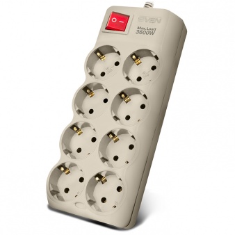 Surge Protector 8 Sockets, 1.8m, Sven SF-08-16, Grey, flame-retardant material