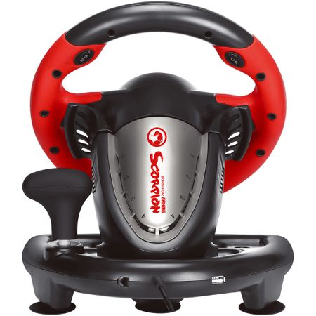 Marvo Racing Wheel GT-902 (PC, PS3, PS4, XOne) Tip produs Volan Compatibilitate PC, PS3, PS4, XBox One Tehnologie Cu fir Interfata USB 2.0 Vibration Feedback Nu Culoare Negru/Rosu Brand: Marvo