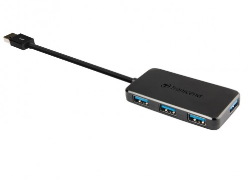 Transcend HUB2, USB3.0 Hub, 4 ports, Ultra slim and portable design, USB cable attached, Black
