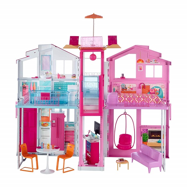 Barbie Casa Malibu Barbie Городской дом "Малибу" 3-этажный дом с 4-мя комнатами, стильным оформлением и большим количеством детализированной мебели и аксессуаров - это и есть новое ультралюксовое жилье для любимой куклы Barbie! Здесь есть кухня и столовая, комната для отдыха, качели на открытом воздухе или в комнате, спальня и ванная комната, а также движущийся лифт. А на 3-м этаже находится небольшая спа-зона! Рекомендуемый возраст: 3 года +