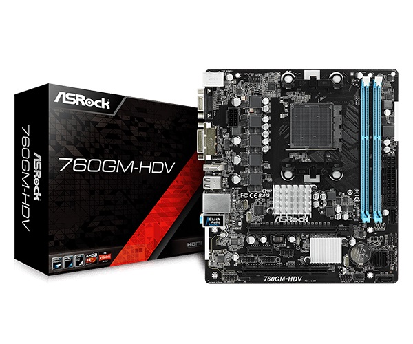 Материнская плата ASRock 760GM-HDV, mATX, Socket AM3+, AMD 760G