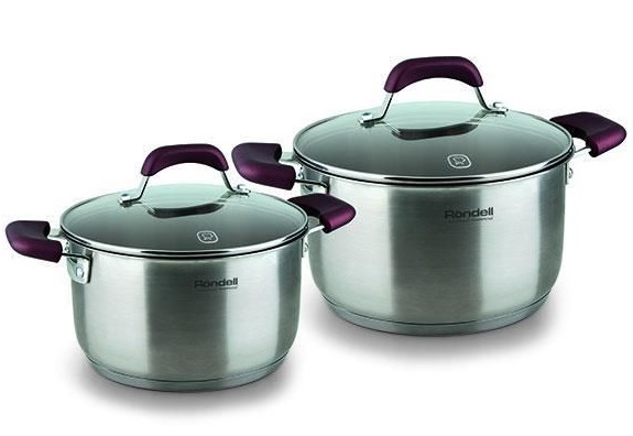 Set de vesela Rondell RDS-822 Коллекция Bojole Индукционное дно да Количество предметов, шт. 4 Крышки в комплекте, шт. 2 Материал корпуса нерж.сталь 18/10 Материал крышки стекло/нерж.сталь Материал ручки бакелит, силикон Комплектация 2 кастрюли, 2 крышки Цвет стальной Вес, кг 4.8 Доп. особенности книга с рецептами Производитель Rondell