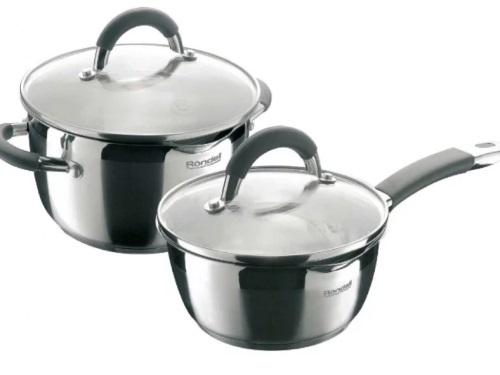 Set de vesela Rondell RDS-340 Форма как технология, комбинация форм как инновация Классика никогда не выходит из моды, поэтому многие люди стараются следовать этому стилю во всех сферах жизни. Именно для них была создана коллекция посуды Flamme, гармонично сочетающая в себе изысканный дизайн, современные материалы и инновационные идеи, обеспечивающие особый комфорт в использовании. Все кастрюли, ковши и сковороды, изготовленные из нержавеющей стали, имеют тройное вштампованное, а затем вплавленное дно, которое гарантирует равномерное прогревание в ней продуктов и идеальное приготовление блюд. Приятно и то, что кастрюли и ковши оборудованы специальными носиками на корпусе и крышкой специальной формы: это дает возможность при необходимости легко и просто сливать жидкость. Силиконовые ручки делают работу с посудой абсолютно безопасной и комфортной. Дополняет коллекцию классический чайник с сатинированной полировкой корпуса, который превосходно впишется в интерьер кухни любого дизайна. В состав набора входит: Кастрюля 20 см (3,2 л) Крышка 20 см Кастрюля 16 см (1,3 л) Крышка 16 см