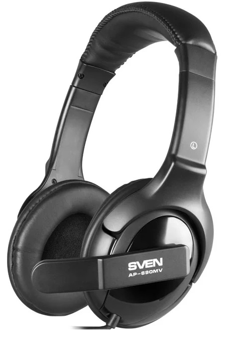 Sven AP-690MV компьютерная гарнитура с полноразмерными наушниками крепление при помощи оголовья встроенный регулятор громкости подключение: 2 x mini jack 3.5 mm частота воспроизведения 20-20000 Гц
