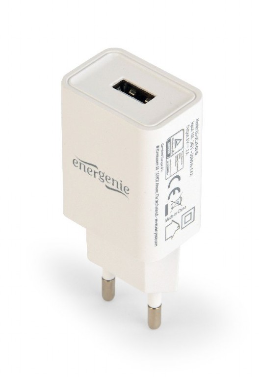 "Universal USB charger, Out:1 USB * 5V / 2.1A, In: Schuko CEE 7/4, White, EG-UC2A-03-W - https://gembird.nl/item.aspx?id=10263"