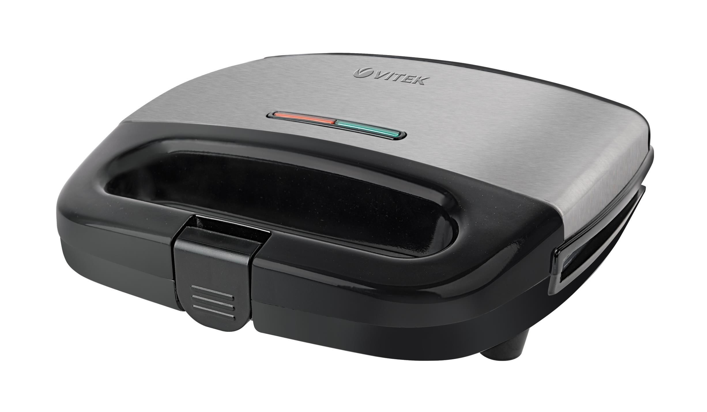 Toaster sandwIch Vitek VT-7147, 750W power output, for preparing of sandwiches and panini, non-stick coating, indicator light, inox Мощность, Вт 750 Индикация включения да Материал корпуса металл/пластик Антипригарное покрытие да Цвет серый/черный Вес, кг 1.5 Доп. особенности компактное хранение в вертикальном положении Производитель Vitek