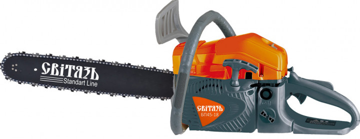 Цепная пила Свитязь БП45-18/2 Цепная пила Свитязь БП45-18/2 — современная и надежная бензиновая пила, способна выполнять большие объемы работ на высоком уровне. С её помощью вы сможете с легкостью выполнять простые работы в саду, заготавливать дрова на зиму или пилить деревья среднего диаметра. За производительную работу техники отвечает бензиновый двигатель увеличенной мощности 3200 Вт с объемом 45 см3. Ёмкость бака для топливной смеси составляет 550 мл, что обеспечивает около 30 — 40 минут непрерывной работы. Пильная гарнитура состоит из шины длиной 45 см и соответствующей цепи шагом 0.325 дюйма. Хорошо сбалансированная конструкция корпуса и небольшой вес, позволяет работать не утомительно в разных положениях, в том числе и на высоте. Пила относится к бытовому классу оборудования, но благодаря хорошо продуманной эргономике и отличным характеристикам, она может дать фору большинству своих конкурентов. Тип Бензиновые Вид Цепная пила Объем цилиндра 45 куб см Объем топливного бака 0.55 л Шаг цепи 0.325 " Размеры 515 x 320 x 270 мм Комплектация Цепная пила, 1 шина / 1 цепь, Инструкция, Гарантийный талон Страна-производитель товара Китай Страна регистрации бренда Украина