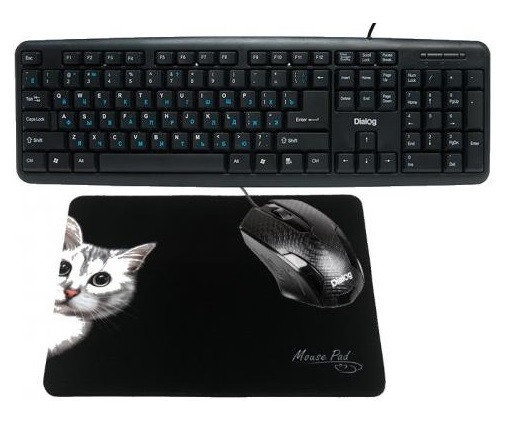 Комплект Dialog Office (2931-99) Тип подключения проводная Длина кабеля 1.5 м Интерфейс USB Тип мыши оптическая Количество кнопок 3 Разрешение 800 dpi Размеры клавиатуры 440x20x133 мм Количество клавиш 104 Цвет набора чёрный Дополнительно Коврик для мыши Производитель Dialog