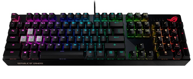 Gaming Keyboard Asus ROG Strix Scope, for FPS, Mechanical, Cherry MX Red, Aluminum, Aura Sync, USB проводная клавиатура интерфейс USB для настольного компьютера, игровая классическая конструкция, механическая размеры (ШxВxГ): 440x39x137 мм вес: 1070 г.